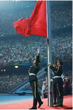 1997年7月1日,香港回归祖国。上级把中英双方政权交接仪式上升国旗的任务交给了我们。为了圆满完成党和人民赋予的历史使命,那年5月,我先后两次到交接仪式现场进行实地考察,然后全力投入到仪仗方案的设计,组织部队精心演练。在庆典仪式上,我们仪仗队战士以严整的军容军姿、昂扬的精神状态、刚健有力的标准动作,使鲜艳的五星红旗随着雄壮的国歌节拍,在香港国际会展中心冉冉升起。国歌奏完,正好五星红旗升到旗杆顶端,迎风招展,整个过程分秒不差,协调统一,圆满顺利,使每一个炎黄子孙都感到扬眉吐气!
